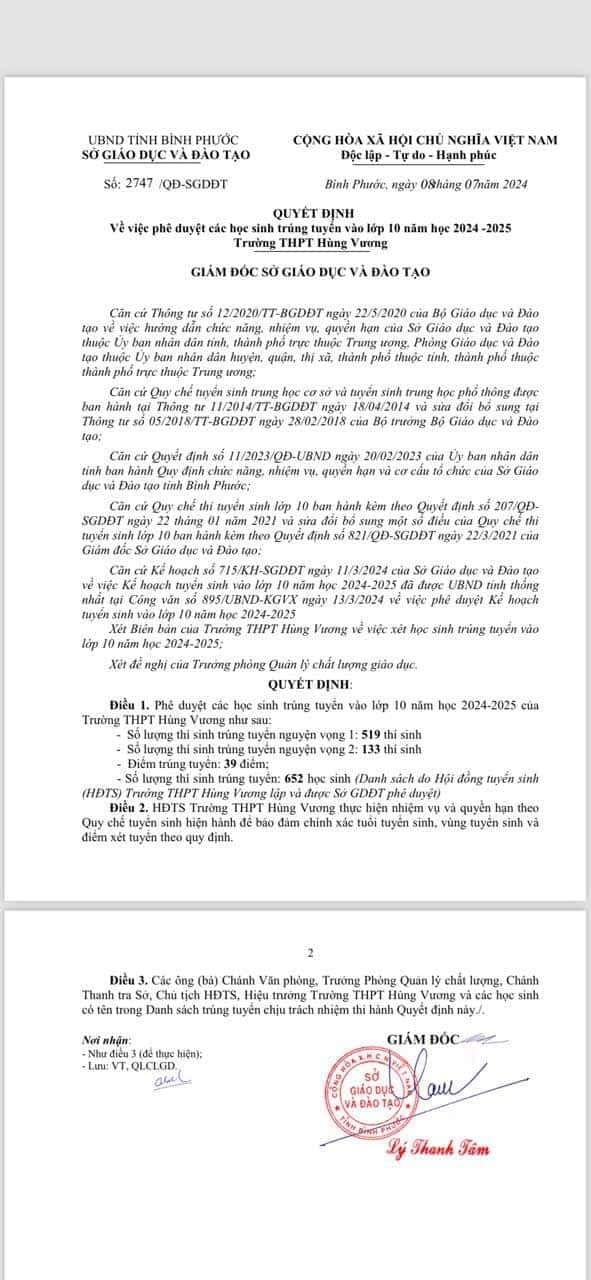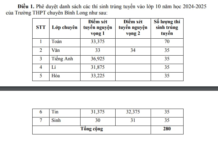 Chính thức điểm chuẩn lớp 10 Bình Phước 2024-2025