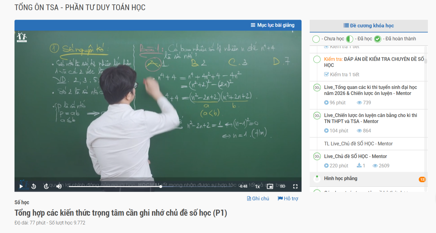 ✅ Lớp học live trực tiếp với đội ngũ giáo viên luyện thi TSA TOP ĐẦU