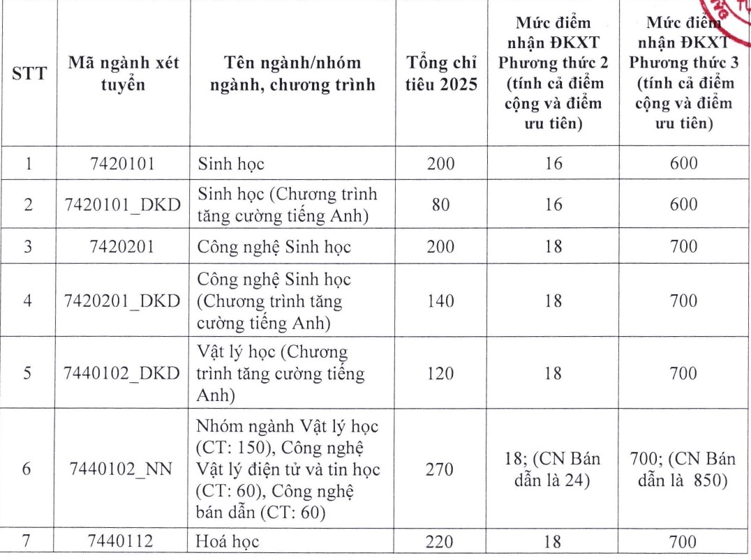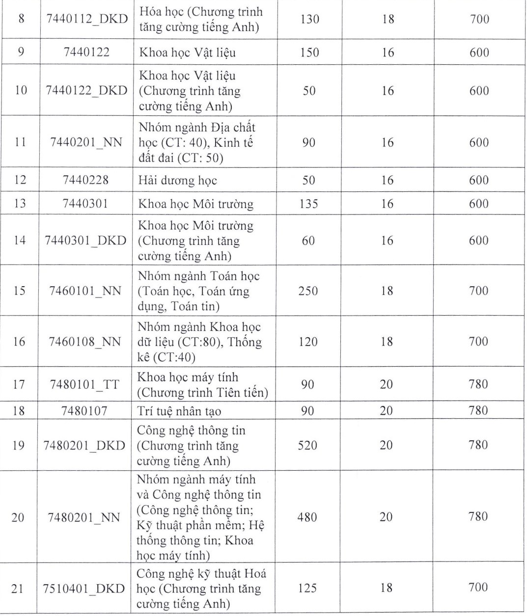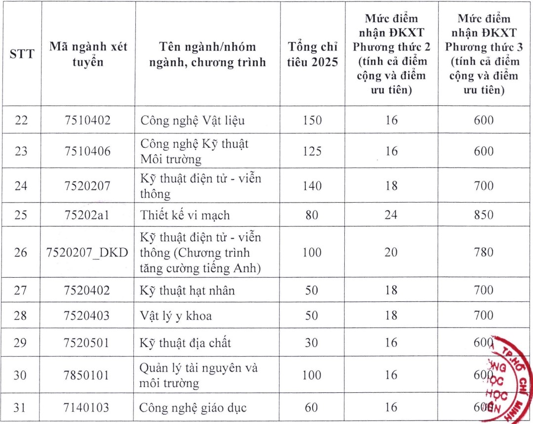 Điểm sàn trường Đại học Khoa học Tự nhiên TP HCM năm 2025 ở các ngành như sau: