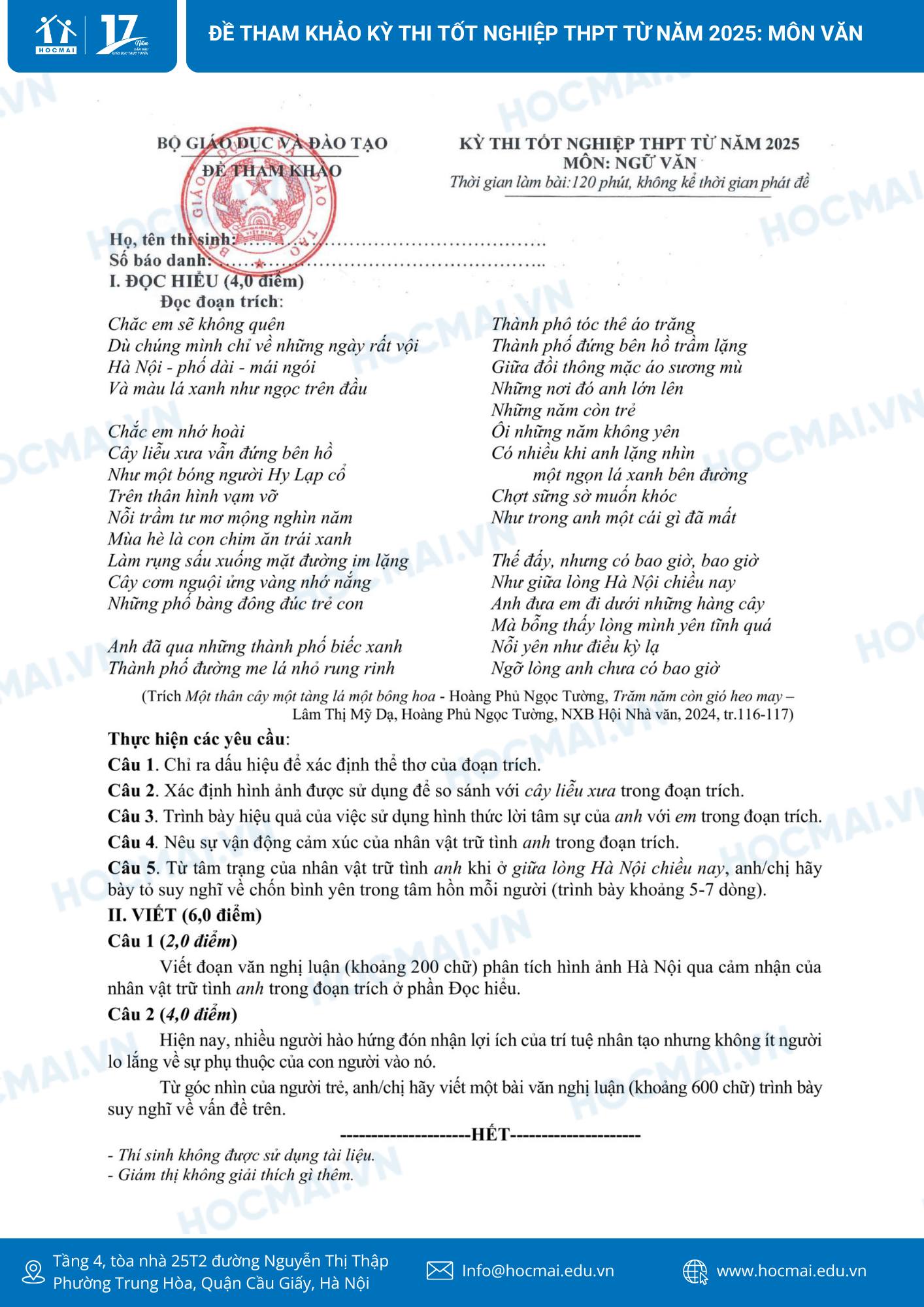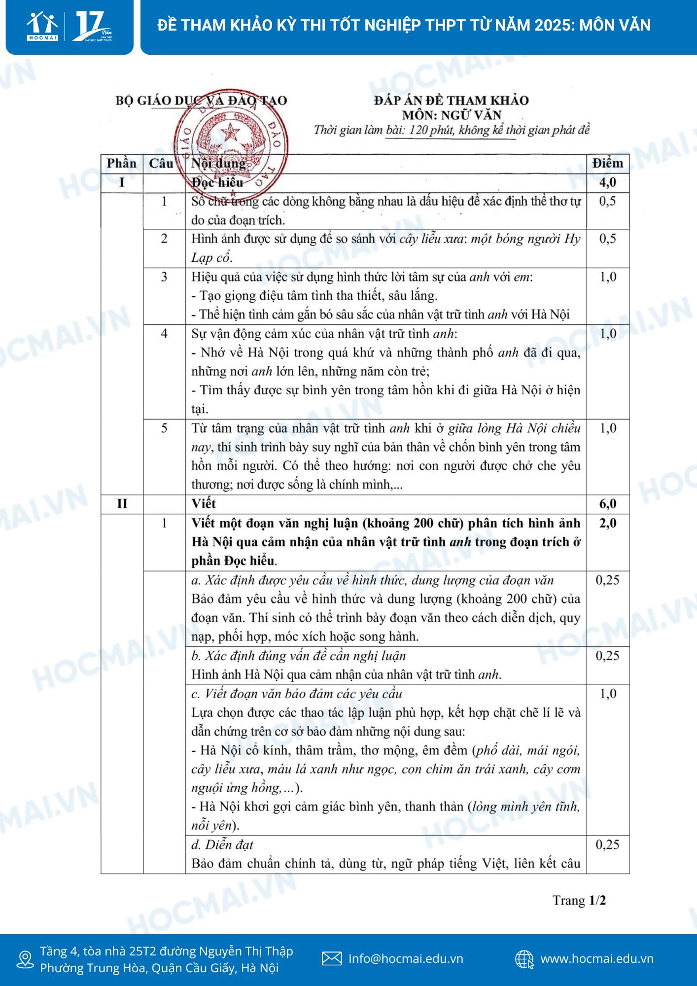 1. Đề thi tham khảo và đáp án môn Ngữ văn cho kỳ thi tốt nghiệp THPT 2025.