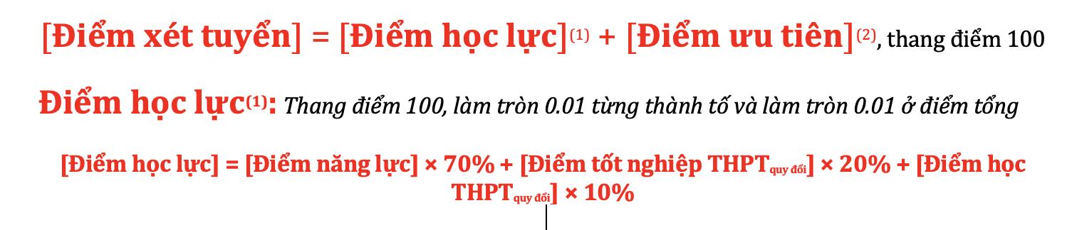 Đối tượng Điểm năng lực Điểm tốt nghiệp THPT quy đổi Điểm học THPT quy đổi Lưu ý
