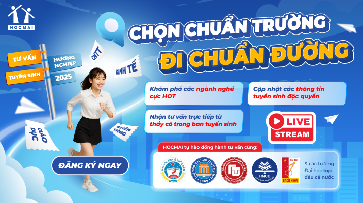 Sự kiện tư vấn tuyển sinh do HOCMAI phối hợp tổ chức cùng các trường Đại học hàng đầu cả nước vào tháng 3-4-5 hàng năm. Cung cấp đầy đủ các thông tin tuyển sinh chính xác & nhanh chóng nhất!