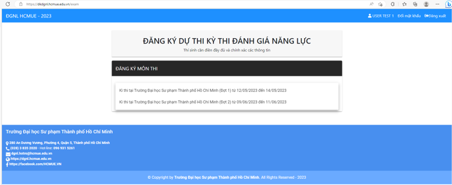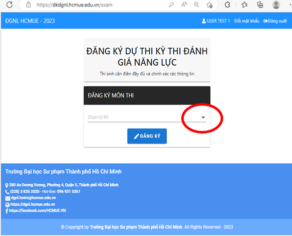 Thí sinh đăng ký dự thi tại website https://dkdgnl.hcmue.edu.vn/