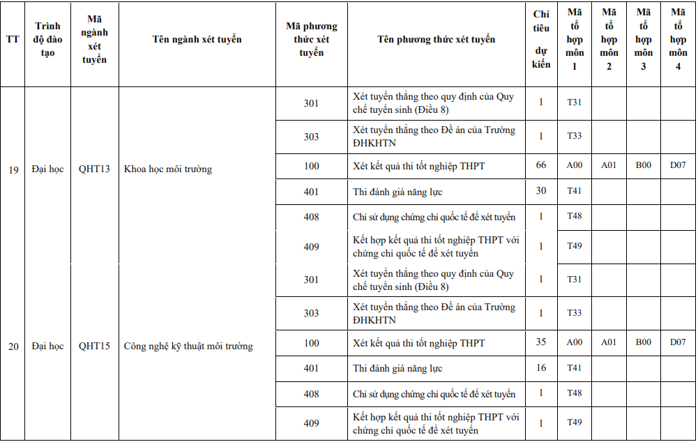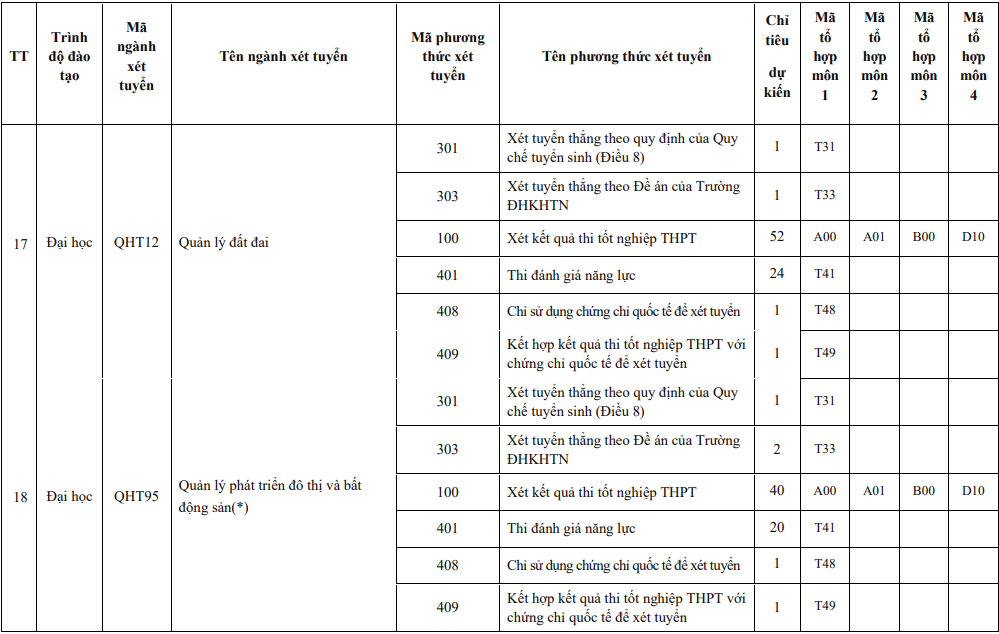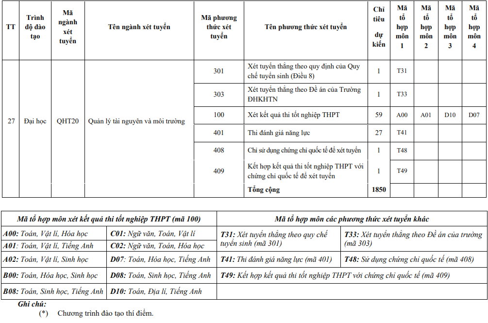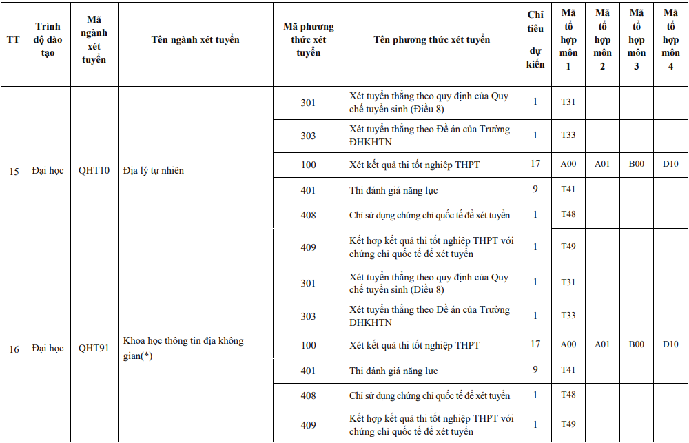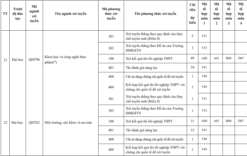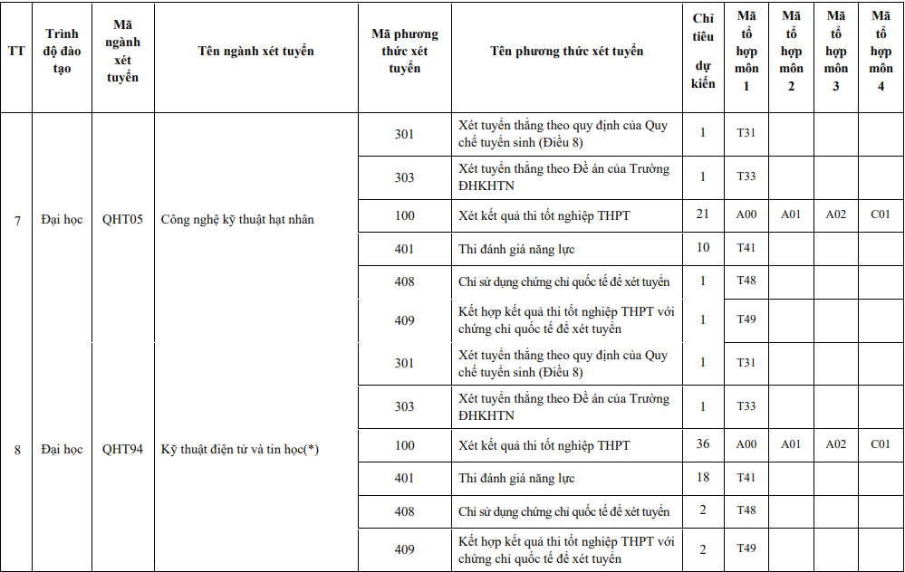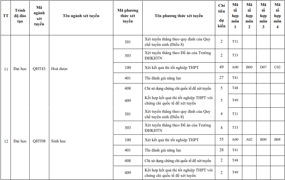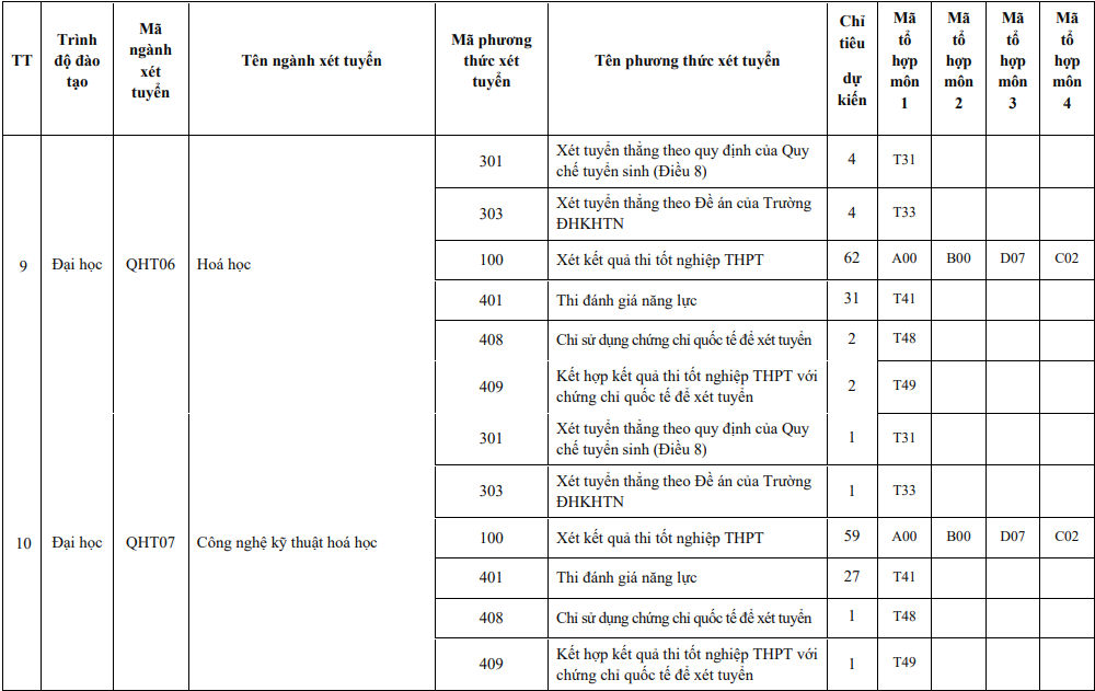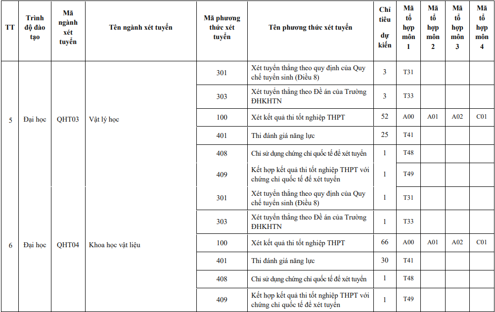 Năm 2024, Trường ĐH Khoa học Tự nhiên sử dụng 6 phương thức để tuyển sinh các chương trình đào tạo, gồm: