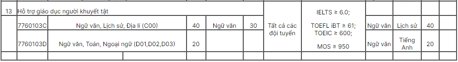 – Ngành Giáo dục đặc biệt đào tạo giáo viên dạy trẻ khuyết tật và hoà nhập.
