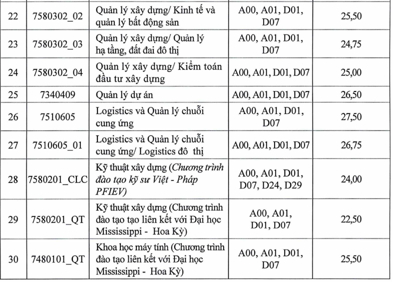 Đại học xây dựng Hà Nội công bố điểm chuẩn xét tuyển trong trong đó điểm chuẩn ngành Logistics và Quản lý chuỗi cung ứng lấy điểm cao nhất với 27.50 điểm.