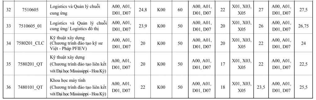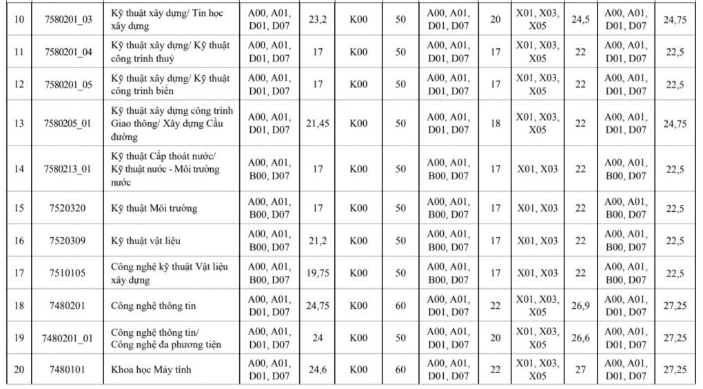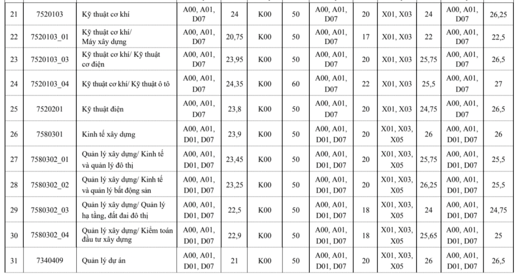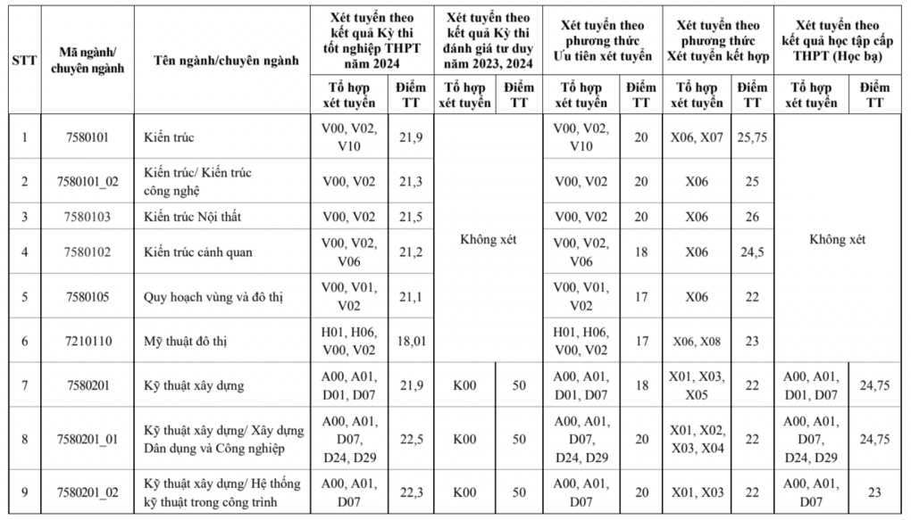 Ngoài ra, trường Đại học Xây dựng Hà Nội cũng công bố điểm trúng tuyển theo các phương thức khác, cụ thể như sau: