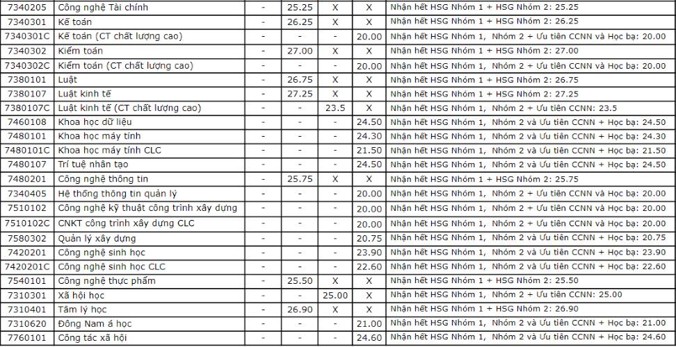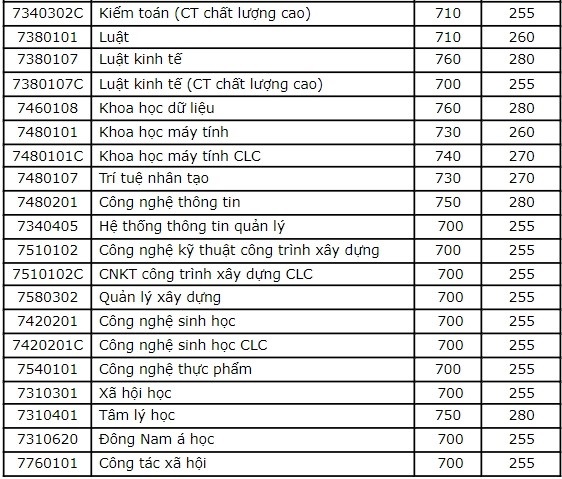 Ngành Marketing năm nay lấy 825 điểm và ngành Công nghệ Tài chính lấy 800 điểm. Các ngành còn lại lấy mức điểm từ 700 – 780 điểm.