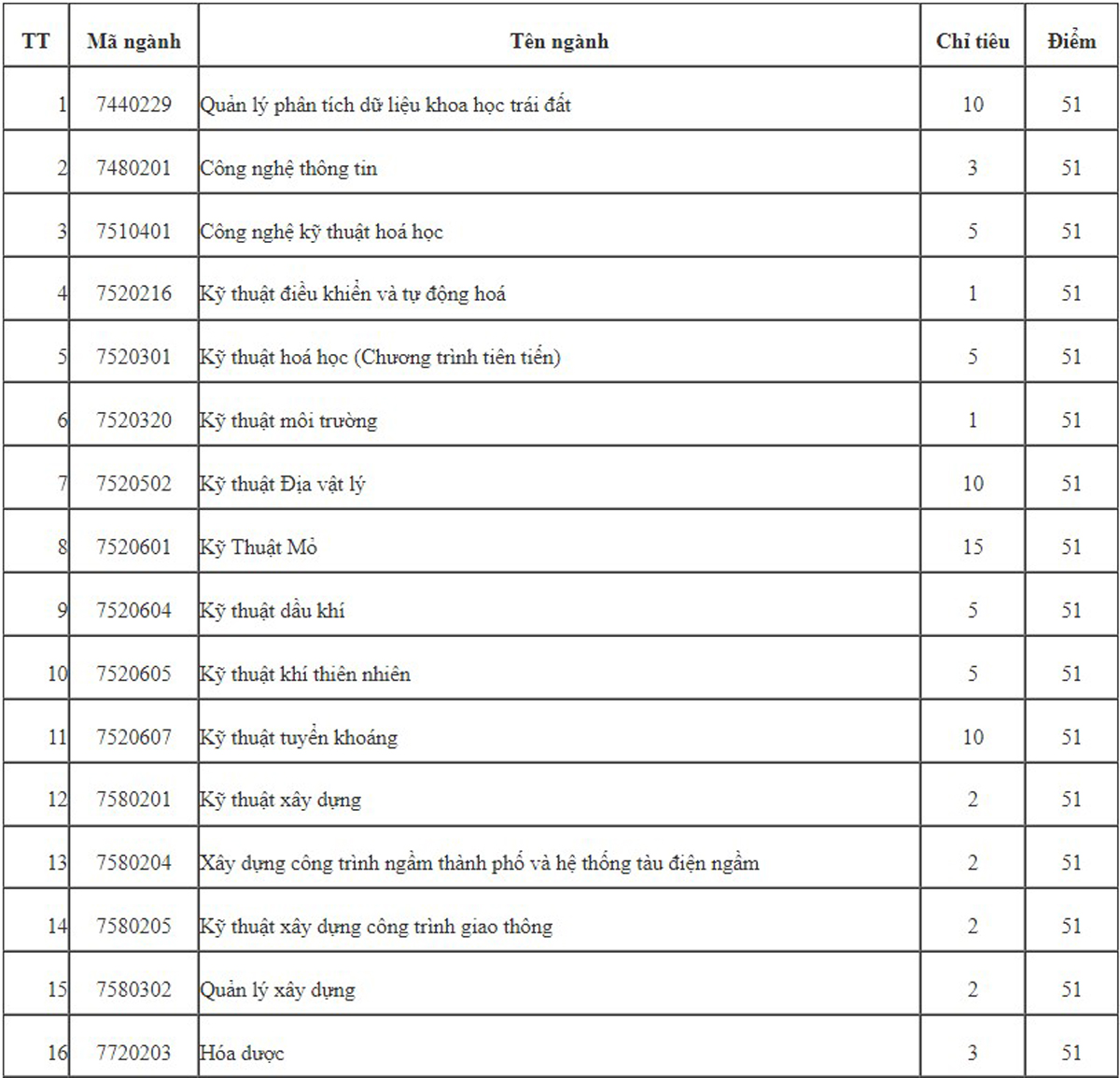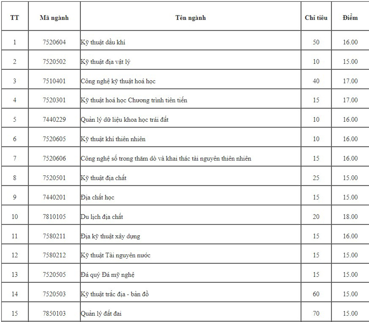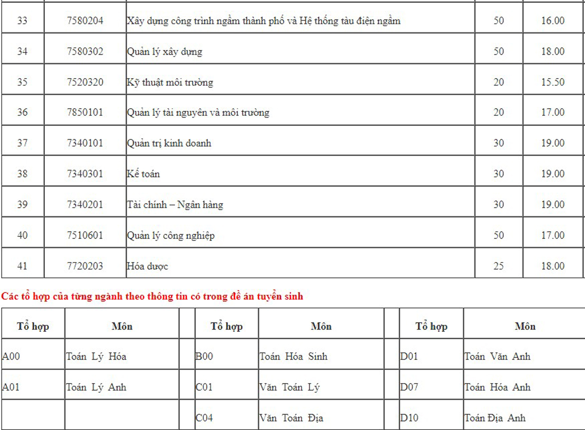 Điểm sàn và tổ hợp xét tuyển các ngành của Đại học Mỏ – Địa chất như sau: