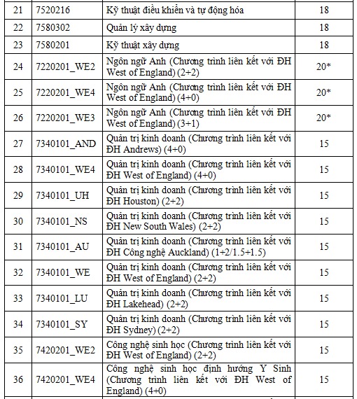 Các ngành đào tạo liên kết với các đối tác của nhà trường có mức điểm sàn thấp nhất.