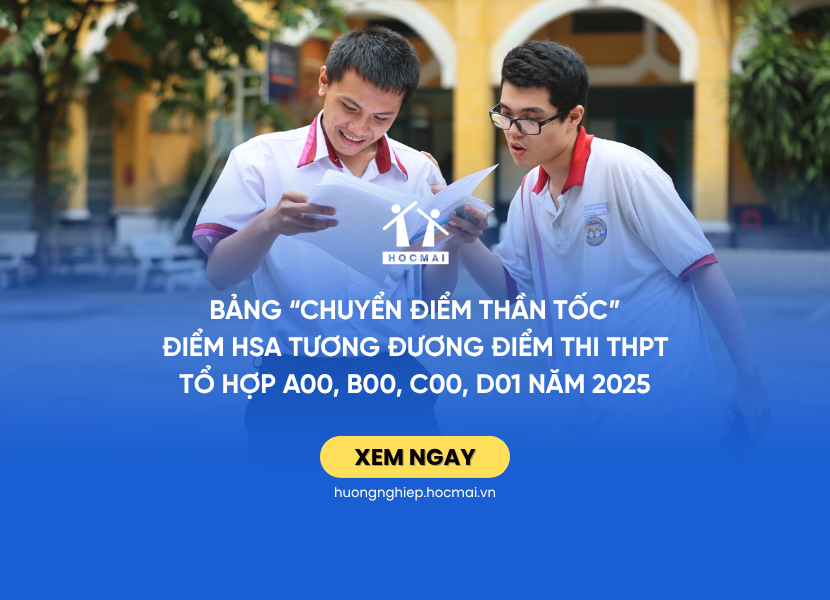 Tuyển sinh 2025: Bảng “chuyển điểm thần tốc” – Điểm HSA tương đương điểm thi THPT tổ hợp A00, B00, C00, D01 năm 2025