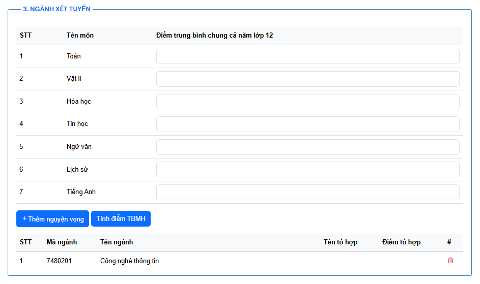 Phương thức 3: Xét tuyển dựa vào kết quả học tập cấp THPT (học bạ);