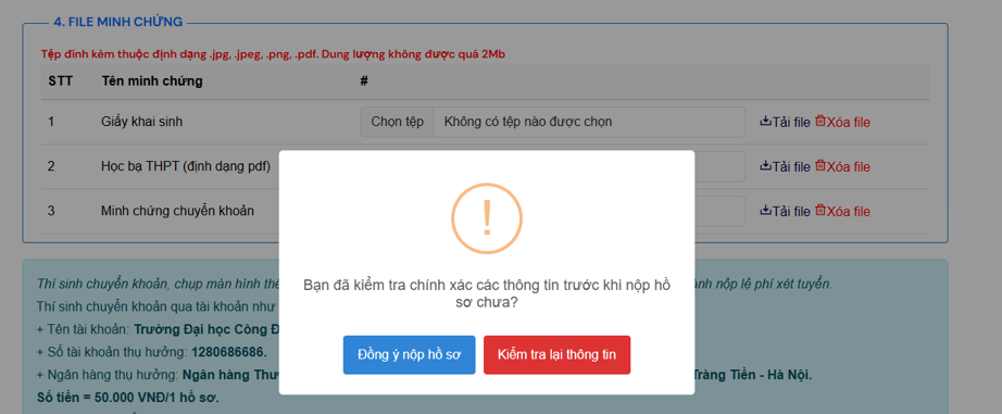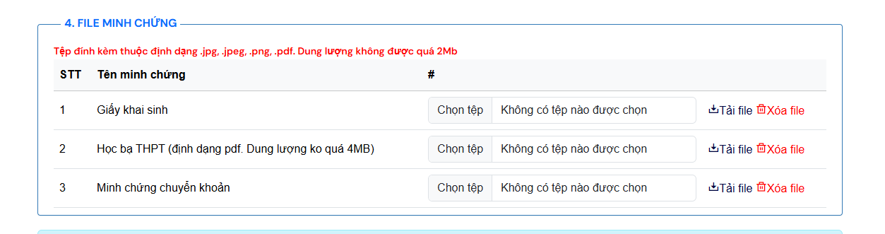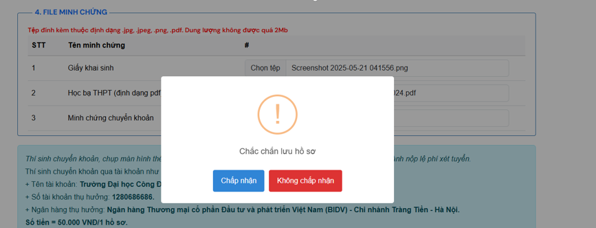 + Phiếu đăng ký xét tuyển thẳng (theo mẫu của Bộ GD&ĐT);