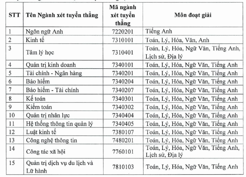Danh sách ngành đào tạo theo phương thức Điểm thi THPT