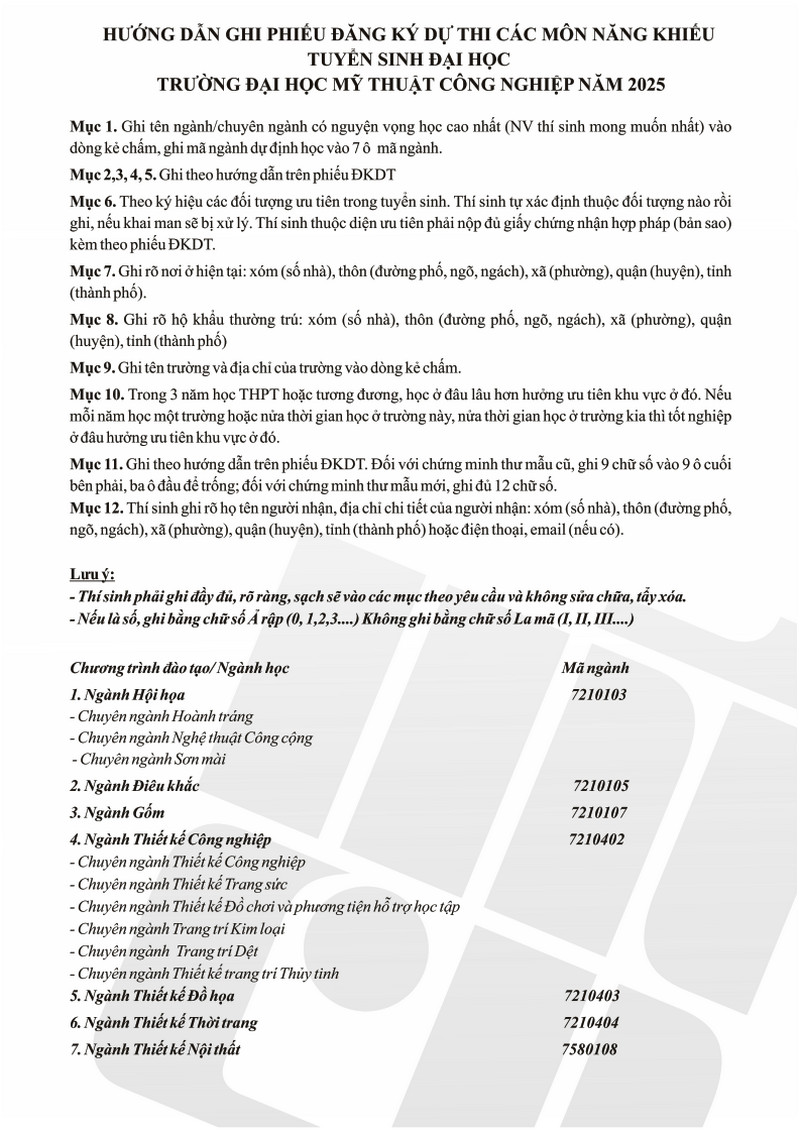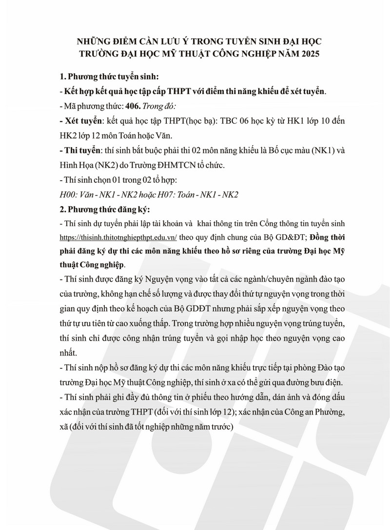 Đồng thời phải đăng ký dự thi các môn năng khiếu theo hồ sơ riêng của trường Đại học Mỹ thuật Công nghiệp.