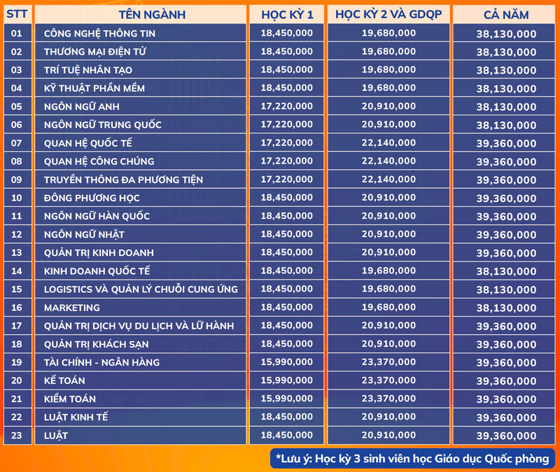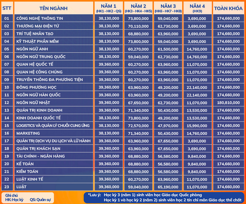 Phụ huynh và thí sinh có thể tham khảo DỰ TRÙ học phí theo từng năm tại HUFLIT: