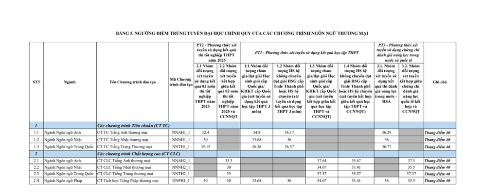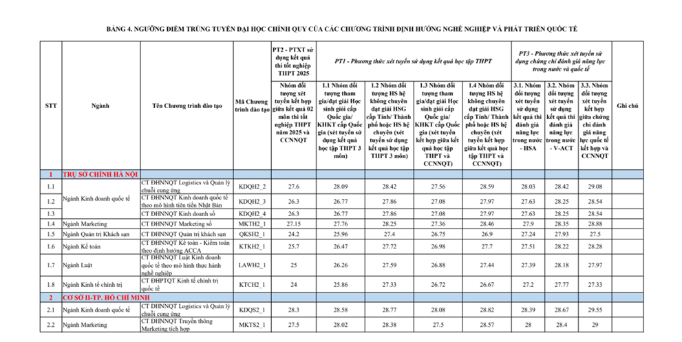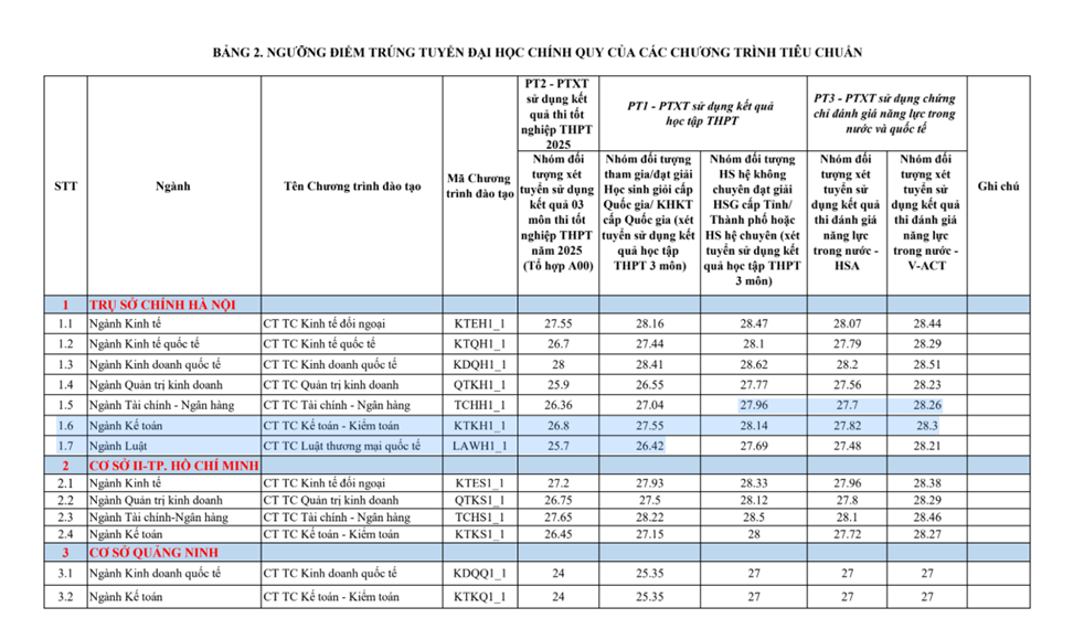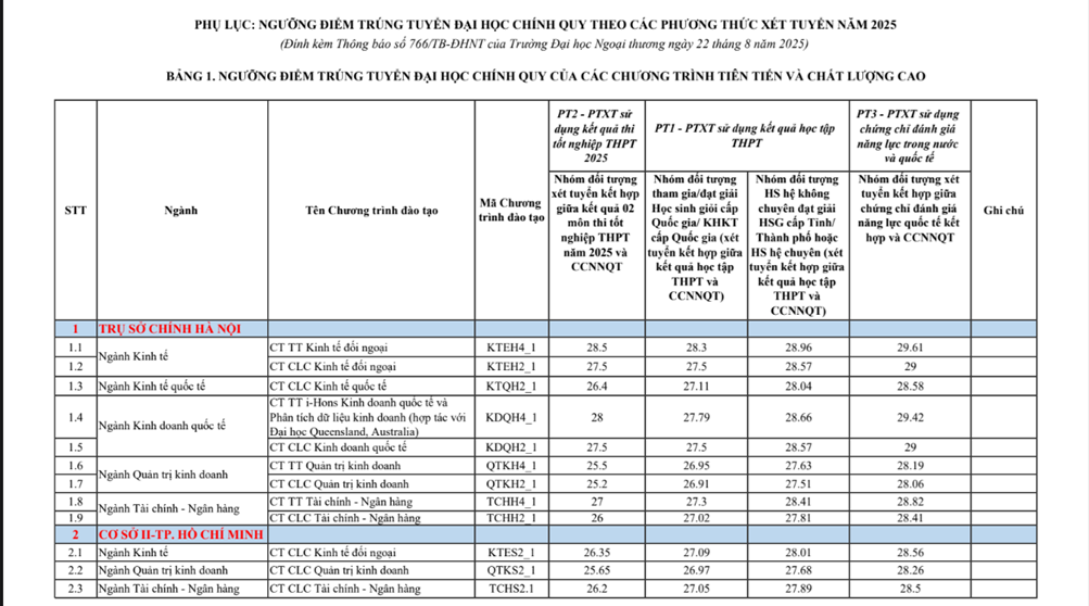 Đại học Ngoại thương công bố điểm chuẩn 2025