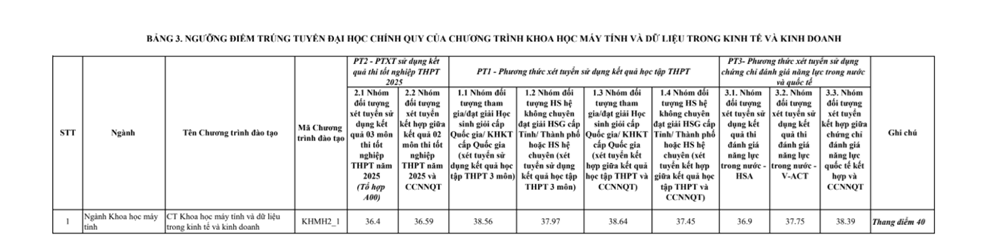 Trường Đại học Ngoại thương (FTU) vừa công bố điểm chuẩn trúng tuyển năm 2025 và một số chương trình đang khiến cả cộng đồng thí sinh “nóng mắt”: Chương trình tiên tiến Kinh tế đối ngoại dẫn đầu với mức 28,5 điểm, trong khi chương trình i‑Hons Kinh doanh quốc tế, Phân tích dữ liệu kinh doanh và chương trình tiêu chuẩn Kinh doanh quốc tế đều giữ vững ngưỡng 28 điểm. Còn nếu bạn đang chạy theo xu hướng công nghệ, ngành Khoa học máy tính với hệ số nhân đôi cho môn Toán khiến ngưỡng điểm chuẩn “chót vót” đạt tới 36,4 điểm trên thang 40. Các chương trình đào tạo khác đảm bảo mức điểm chuẩn từ 25–27 điểm, tạo nên dải điểm phản ánh chất lượng đồng đều và cạnh tranh cao mỗi năm