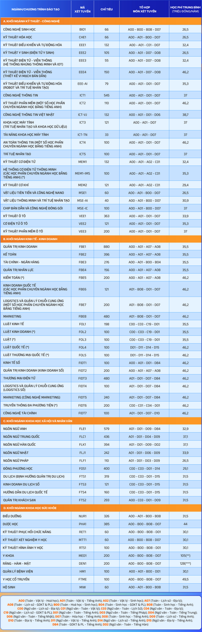 10 FBE1 Quản trị kinh doanh 880 ĐT THPTHọc Bạ A00; A01; D01; D07