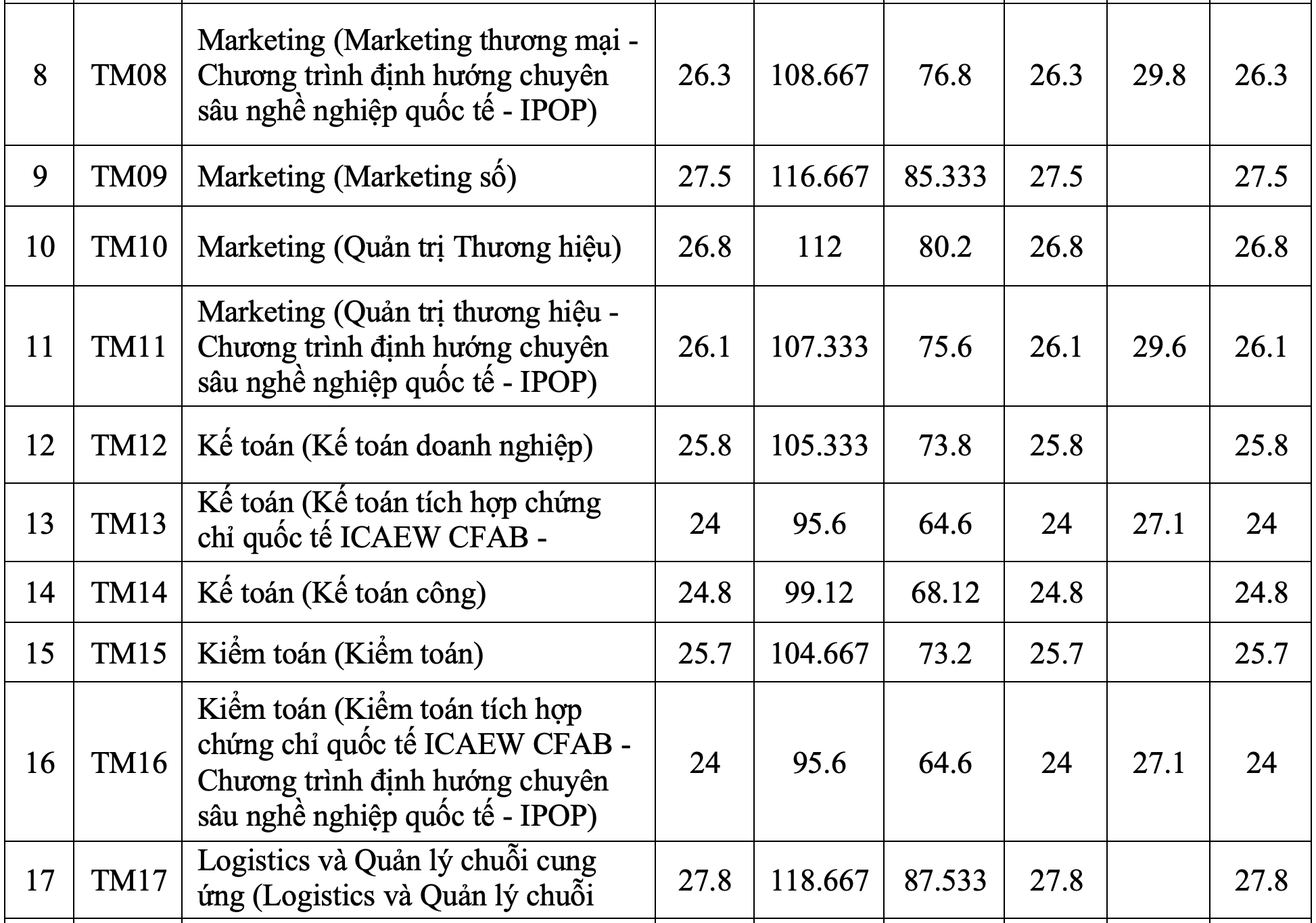 Điểm chuẩn Đại học Thương Mại 2025