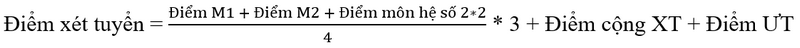 Điểm xét tuyển = Điểm M1 + Điểm M2 + Điểm M3 + Điểm cộng XT + ĐƯT