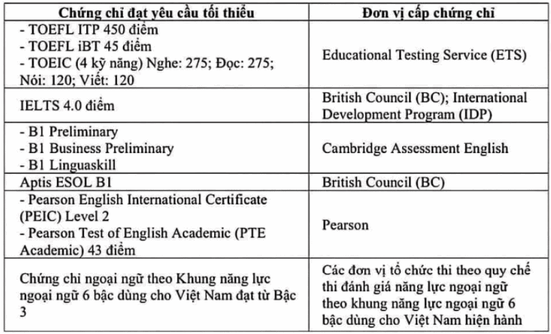 Thí sinh có IELTS 5.0 đứng vị trí ưu tiên thứ 11.