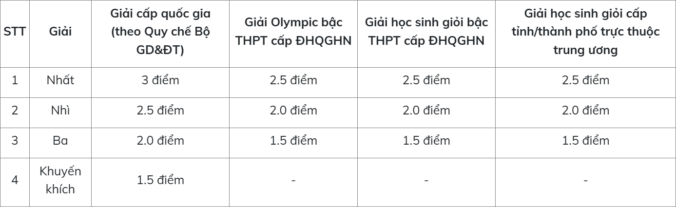 3.2. Đối tượng học sinh các trường THPT trên toàn quốc tham dự kỳ thi chọn học sinh giỏi bậc THPT cấp ĐHQGHN hoặc cấp tỉnh, thành phố trực thuộc trung ương với các môn Toán, Lý, Hóa, Sinh, Tin học đạt giải Nhất, Nhì, Ba