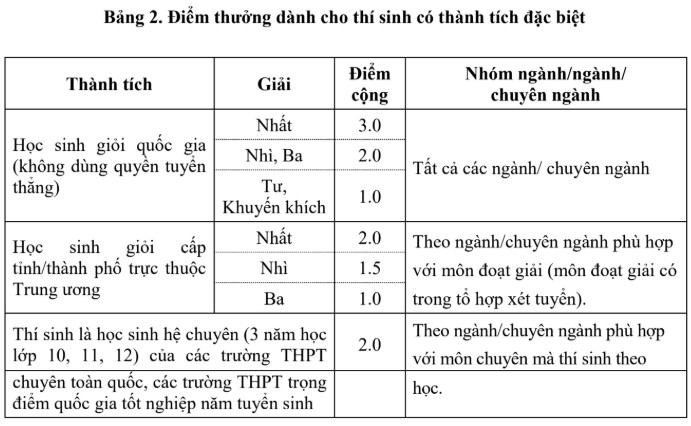 Tổng điểm cộng, điểm thưởng (gọi chung là điểm cộng) đối với thí sinh có thành tích đặc biệt, thí sinh hệ chuyên không vượt quá 10% mức điểm tối đa của thang điểm xét (tối đa 3 điểm đối với thang điểm 30).