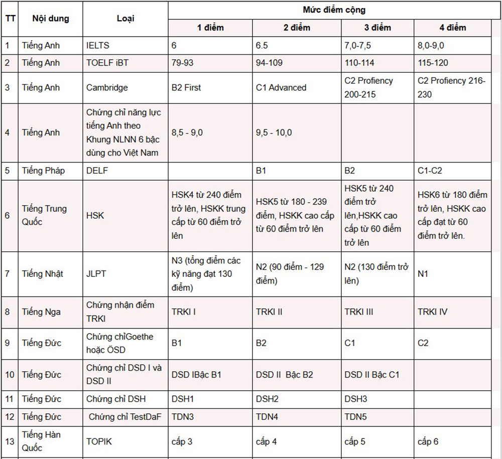 3. Điểm cộng thêm đến từ chứng chỉ như IELTS, SAT, A‑Level hoặc giải học sinh giỏi; tối đa không vượt quá 10% tổng điểm.