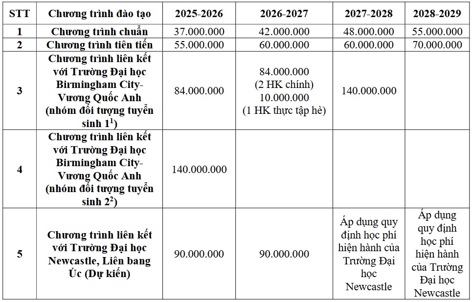 | Chương trình | Học phí/năm học 2025–2026 |