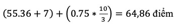 Ví dụ thứ nhất, thí sinh A đạt điểm thi TSA là 55,36, có chứng chỉ ngoại ngữ là IELTS đạt 8.0 (theo quy định của Đại học Bách khoa Hà Nội, thí sinh A sẽ có điểm thưởng là 7), thuộc khu vực 1 (thí sinh sẽ được cộng thêm 0,75 điểm theo thang 30), thì có điểm xét tuyển theo điểm thi TSA là: