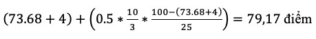 Ví dụ thứ 2, thí sinh B đạt điểm thi TSA là 73,68, có chứng chỉ ngoại ngữ là IELTS đạt 6.5 (thưởng 4 điểm), thuộc khu vực 2 nông thôn (được cộng 0,5 điểm theo thang 30) thì sẽ có điểm xét tuyển theo điểm thi TSA là: