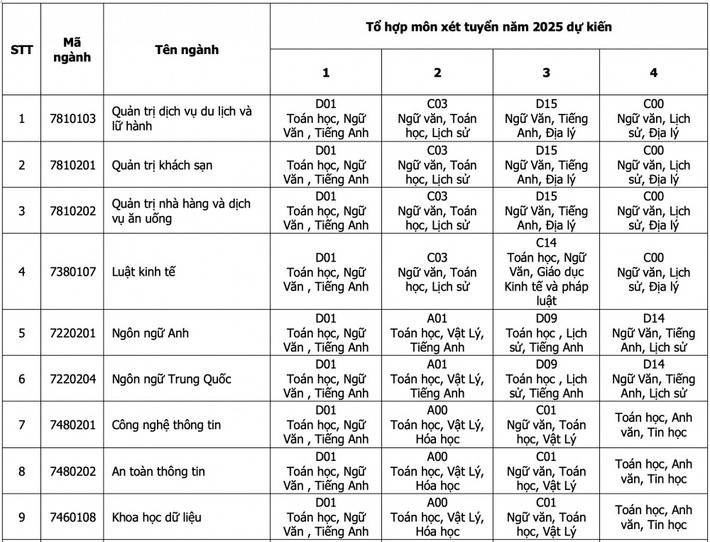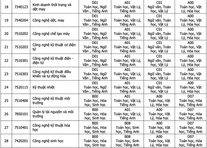 Theo đó, năm 2025, Trường Đại học Công Thương TP. Hồ Chí Minh cung cấp đa dạng các tổ hợp môn để đáp ứng nhu cầu của thí sinh.