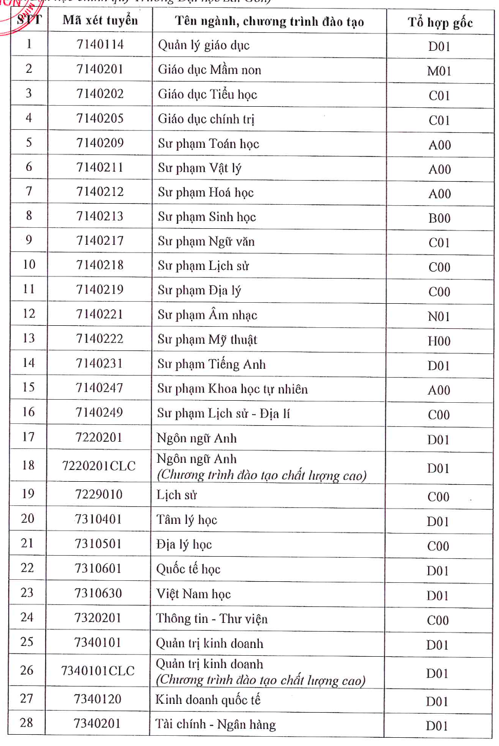 | Xét theo điểm thi tốt nghiệp THPT | Các ngành ngoài sư phạm |