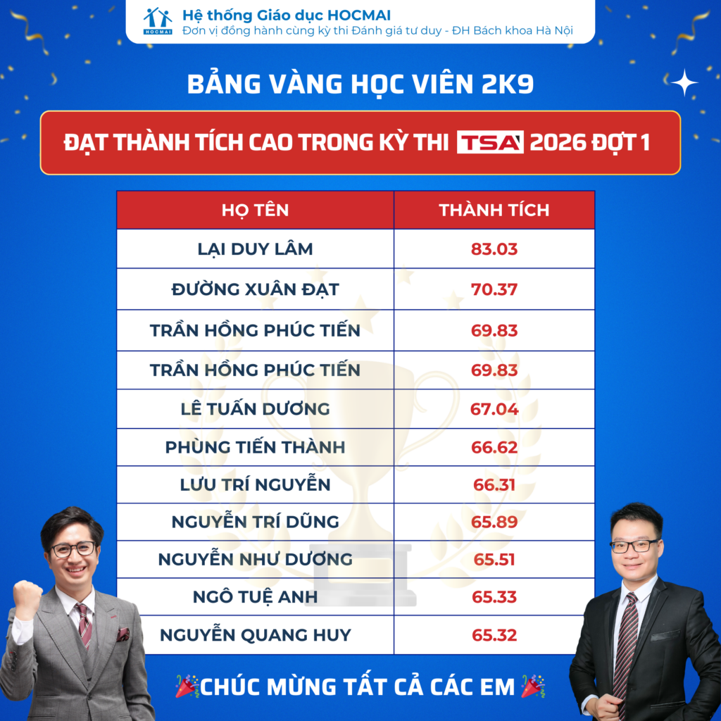 Nếu bạn cũng vừa nhận được kết quả TSA, đừng quên báo điểm về HOCMAI để nhận quà và học bổng giá trị!👉 Báo điểm tại đây: https://topuni.hocmai.vn/baodiem