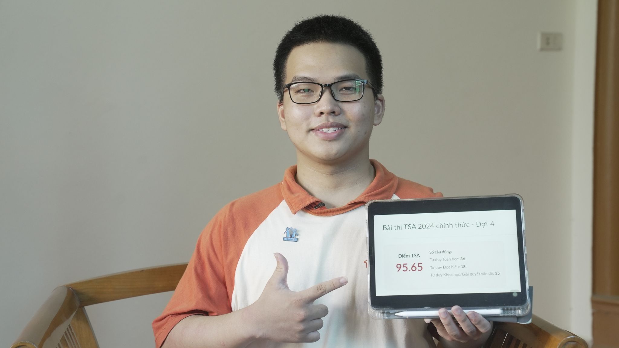 Huy chia sẻ rằng em đã bắt đầu ôn luyện đánh giá tư duy thì từ tháng 9/2023. Em tham gia 4 kỳ thi: 79,14 điểm, 82,43 trong đợt 3, và 95,65 trong đợt 4 và là thủ khoa.